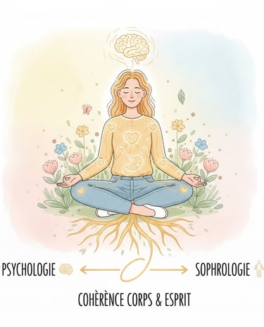 la sophrologie, pour travailler avec le corps, les ressentis et les émotions.